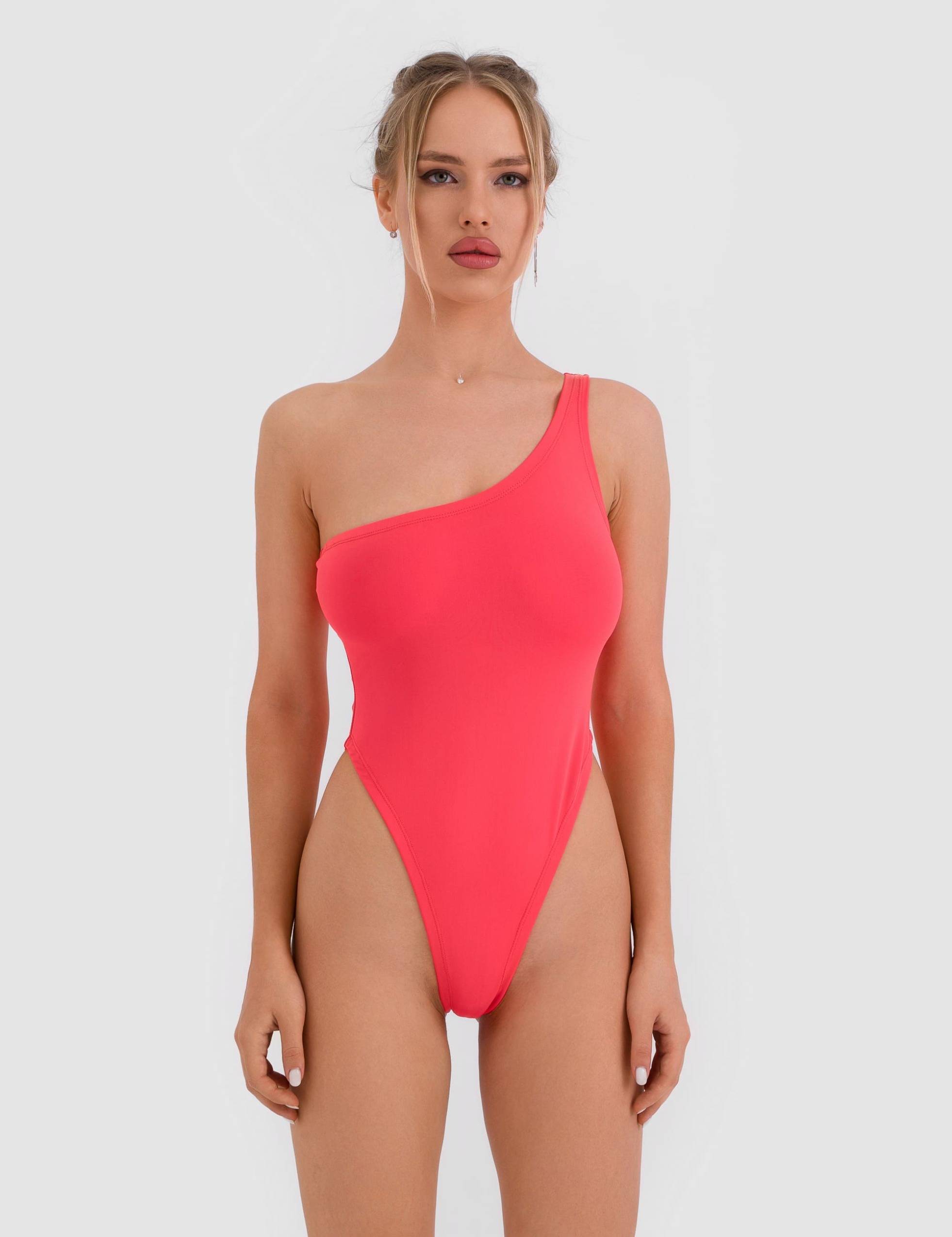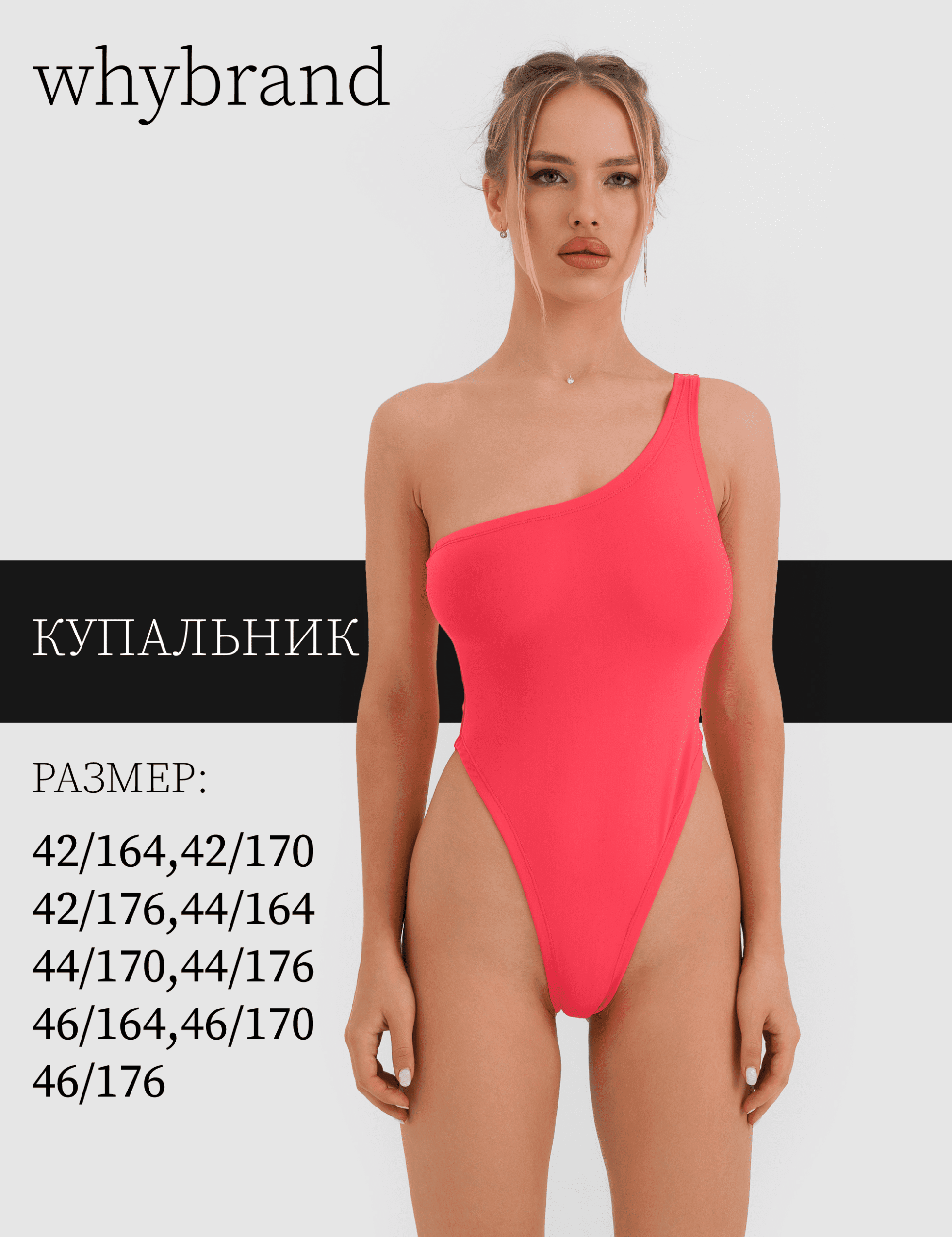 Купальник цельный, широкая бретель на одно плечо, высокие проймы ног до линии талии. Подклад лифа с поддерживающей грудь притачной резинкой. Срезы с подгибкой на узкую резинку. Выкройка представлена в размерах 42,44,46 и ростовках 164,170,176 и двух форматах для печати - на принтере и плоттере.