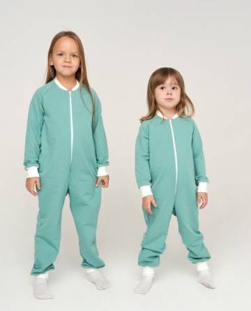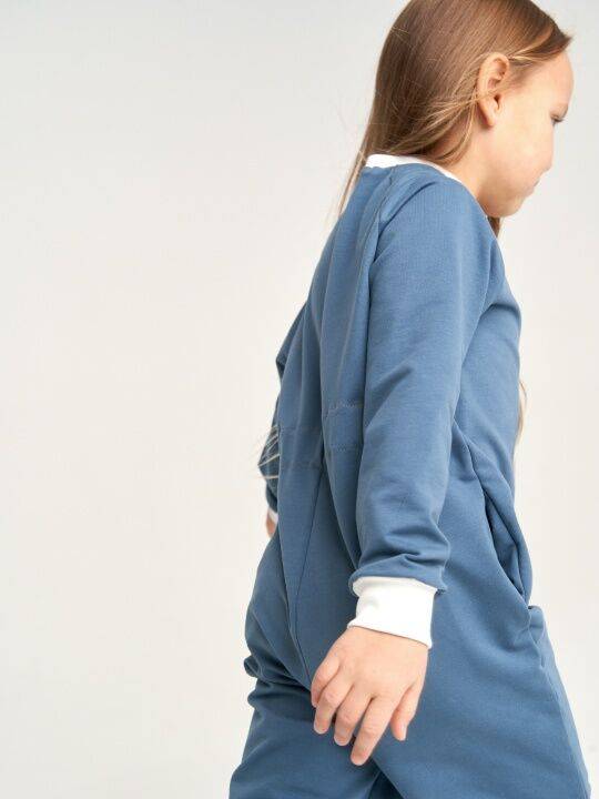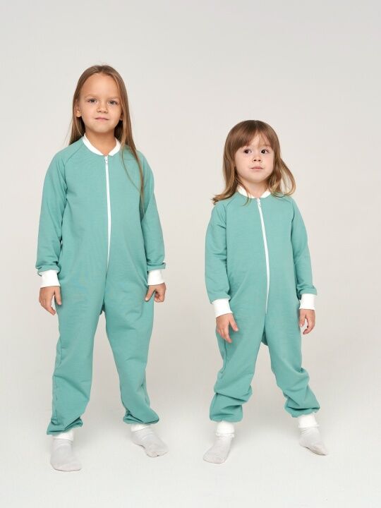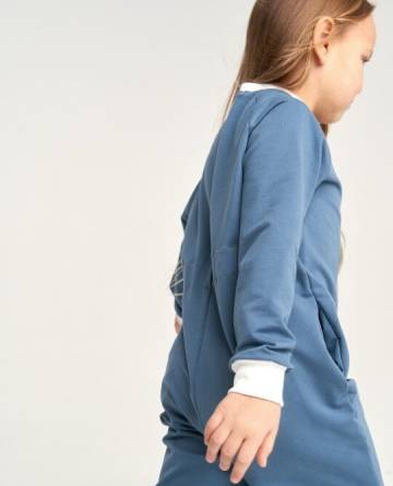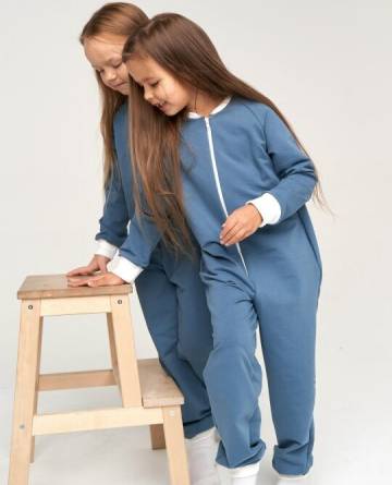 Комбинезон домашний свободного силуэта, горловина обтачана стойкой из кашкорсе/рибаны, низ рукава и штанин обработаны манжетами из кашкорсе/рибаны. Застежка-молния по переду.
