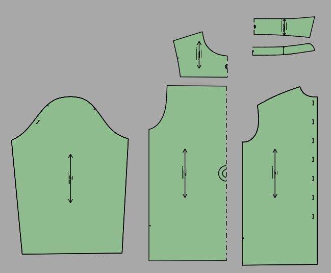 Отрезная кокетка на полочке и спинке, от которой идут сборки.