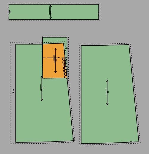 Передняя планка: Имитация застежки. Планка зашита до начала разреза, пуговицы несут декоративную функцию.
