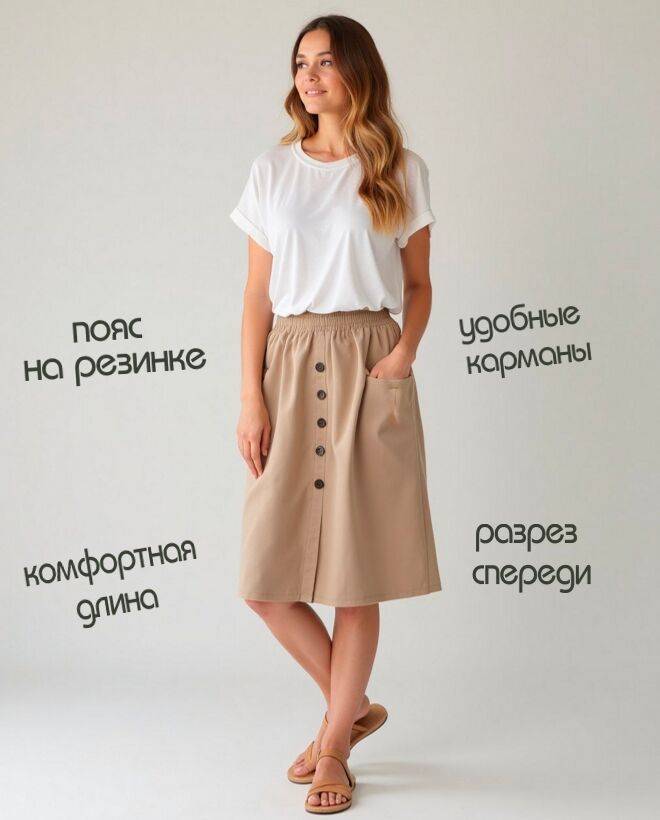 Максимум комфорта: Идеальная юбка на каждый день благодаря поясу на резинке и отсутствию сковывающих застежек.