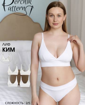 Выкройка бескаркасного бюстгальтера с вытачками на чашках , чашка и спинка бюстгальтера на подкладке из эл. кулирной глади. Широкий отрезной поясов с резинкой внутри ждя лучшей поддержки. Дополнительная поддерживающая деталь для функции кормления. Бюстгальтер в двух вариантах чашки - чашка для функции гв и чашка без функции ГВ ( удлиненная) , на спинке переходит к бретель на регуляции .